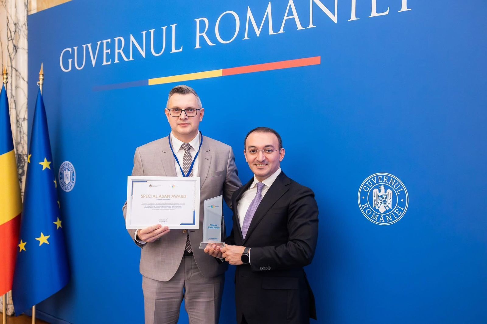 “ASAN xidmət” Rumıniya Hökumətinin təşəbbüsü və dəvəti ilə bu ölkədə dövlət xidmətləri sahəsində həyata keçirilmiş layihələrin cari il üzrə qiymətləndirilməsində və mükafatlandırılmasında iştirak edib. “ASAN xidmət” modelinin dövlət xidmətləri sahəsində innovasiyaların və rəqəmsal həllərin tətbiqi ilə əldə etdiyi qabaqcıl nailiyyətlərinə istinad edilərək müsabiqənin qaliblərindən biri Dövlət Agentliyi tərəfindən seçilib və qalibə xüsusi olaraq təsis olunmuş “ASAN” mükafatı təqdim olunub.