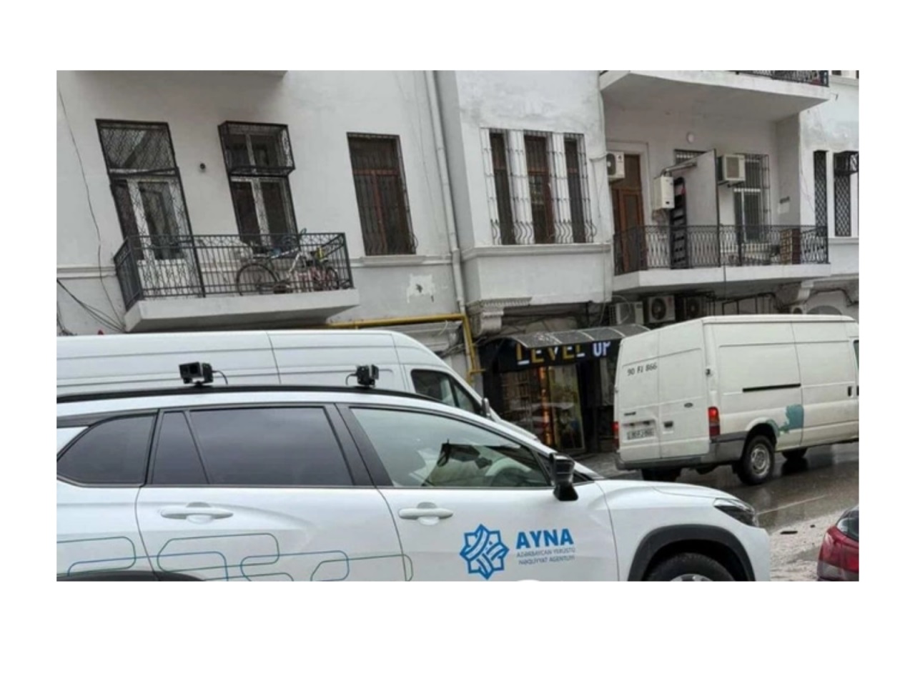 Azadlıq prospektində yolun asfalt qatı çöküb və AYNA-nın maşını həmin çuxura düşüb.