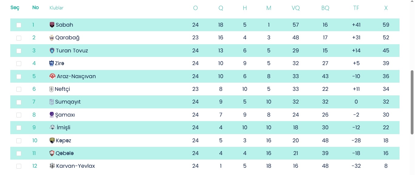 TURNİR CƏDVƏLİ: