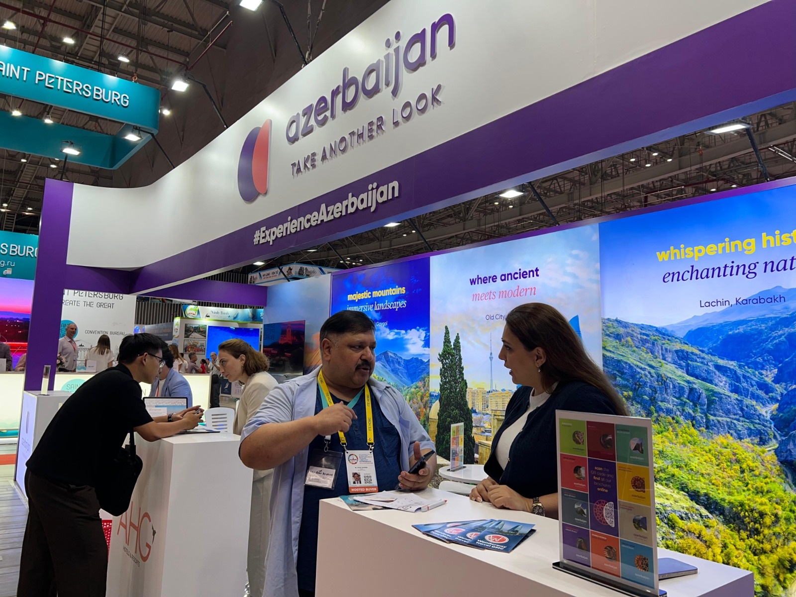 “Experience Azerbaijan” stendinin ziyarətçilərinə ATB nümayəndələri və turizm sahəsi tərəfdaşları tərəfindən ölkə haqqında məlumat verilir və potensial əməkdaşlıq imkanları dəyərləndirilir.