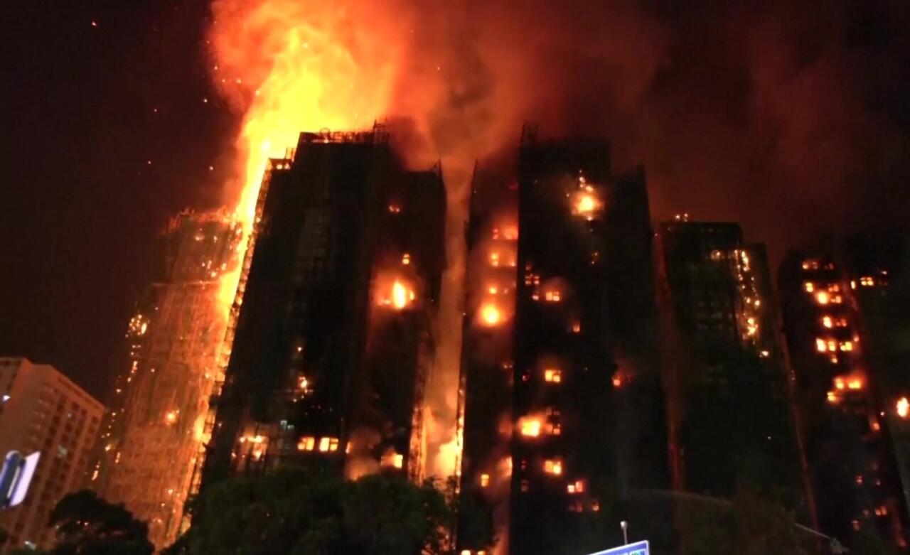 Honkonqda mənzil kompleksində güclü yanğın olub.